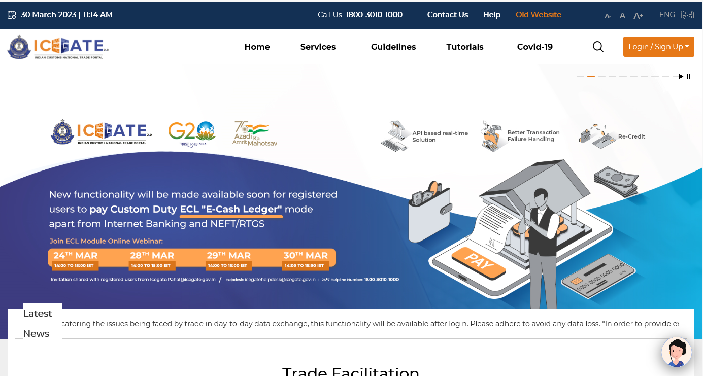 Along with the website's services, ICEGATE offers information regarding exporter guidelines and import compliances. It offers a single window for the online submission of paperwork linked to commercial transactions as well as the payment of taxes and customs fees.