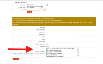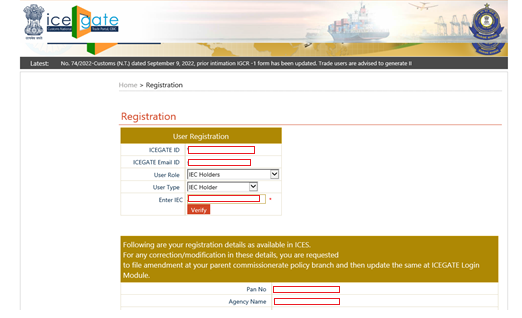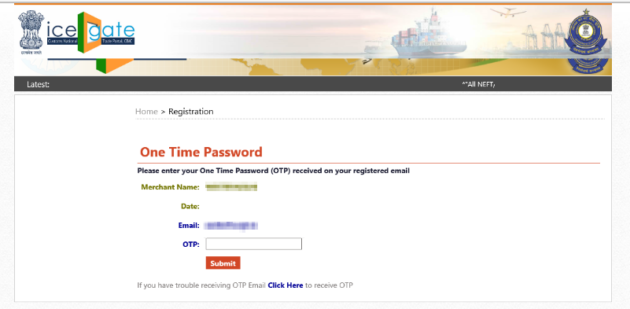 The applicant needs to provide his/her ICEGATE ID and email id. The id will be of the applicant’s choice. The ICEGATE id should be unique else the page will not accept it.